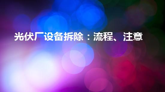 本文针对光伏厂设备拆除的流程和注意事项、成本进行了详细的阐述。在拆除过程中,特别是在保证安全和环保的前提下,需要充分考虑到人力资源、物资资源和资金预算。同时,对拆除过程中涉及到的主要成本进行详细的分析,为读者提供更为具体、实用的信息。
