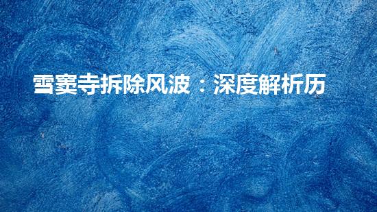 雪窦寺位于北京市海淀区,创建于唐代,距今已有千年历史。然而,雪窦寺的传统建筑一直存在着安全隐患。为了保障大众安全,政府多次对其进行整修和加固,但效果不佳。因此,政府决定拆除雪窦寺,并引发了一系列争议和讨论。