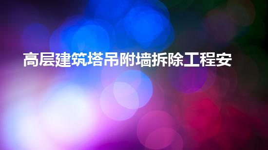 高层建筑塔吊附墙拆除工程是非常危险的任务,要确保这个任务的安全进行,有必要制定详细的作业计划,加强现场管理,严格的技术要求和不同的人员配备。同时,必须遵循环保的要求,以确保这个任务的成功和环保效益的最大化。