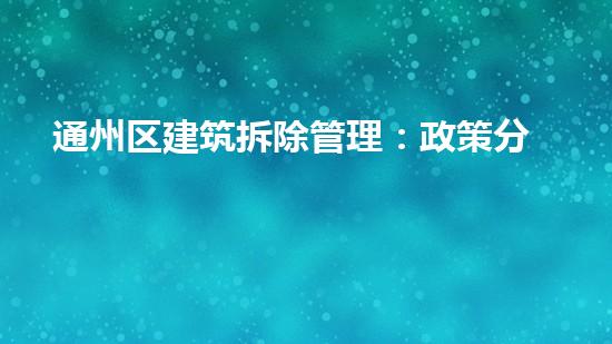 通州区建筑拆除管理政策主要由《建筑垃圾综合利用和管理办法》、《北京市城市道路开挖与建筑施工管理规定》、《通州区建设工程环境保护管理办法》等一系列政策和法规组成。这些政策和法规主要规定了建筑拆除的管理标准、手续、流程和要求,涉及到建筑拆除的各个环节。