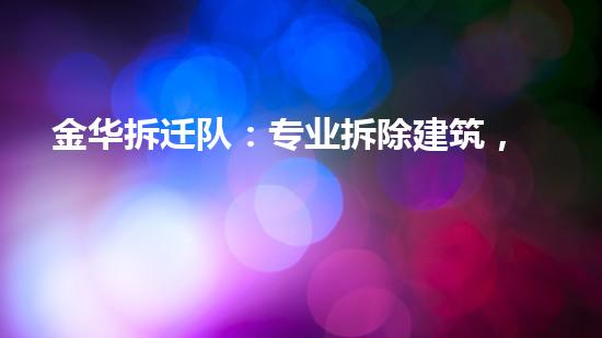金华拆迁队是一家专业的拆迁公司,提供高效、安全、快捷的服务,并致力于为客户提供周到、贴心的服务。本文将详细介绍金华拆迁队,从多个方面对其优秀的业务进行分析和阐述。