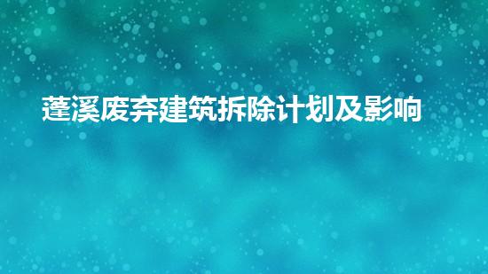 本文围绕蓬溪废弃建筑拆除计划及其影响展开,探讨了可持续解决方案的可行性和必要性。对于这一议题,拆除行业专家应该从多个角度进行深入阐述,包括拆除方法、污染控制、资源回收和环保施工等方面。通过详细阐述这些方面,本文旨在为相关从业人员、政策制定者和公众提供科学、可行的拆除方案,为城市建设和环保事业做出积极的贡献。