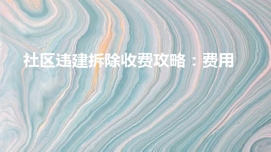 社区违建拆除的收费标准在不同地区有所不同。一般来说,收费根据违建的规模、难度、地理位置和违建类型等因素来确定。同时还要考虑到安全、环保等方面的成本,以及政府扶持项目等因素。具体的收费标准应由地方政府部门进行制定,建议在制定收费标准时能够考虑到地区经济发展水平和群众负担能力等因素。