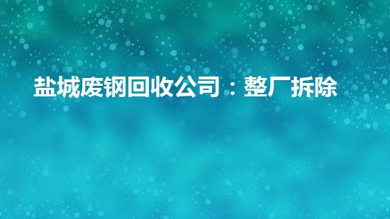 盐城废钢回收公司是整厂拆除回收技术专家,该公司在废钢回收方面技术领先,十分有名。本文从拆除行业专家的角度对该公司进行了深入分析,介绍了该公司在废钢回收方面的专业知识和技术特点。