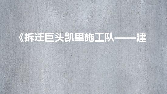 对于建筑业来说,《拆迁巨头凯里施工队——建筑领域的瑰宝》是一篇非常值得注意的文章。它介绍了凯里施工队作为中国顶尖的拆除专家的背景和工作历程,全面展示了他们在拆除行业的专业技术和经验,使读者对拆除行业有了更深入的了解和认识。