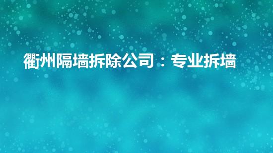 总而言之,衢州隔墙拆除公司专业拆墙、砸墙服务已经成为许多用户的首选,主要得益于公司的团队实力、技术实力、设备及环保措施等方面的优势。未来,越来越多的用户相信,衢州隔墙拆除公司会在不断地创新和进步中,不断实现品质、效率和环保的提高,成为更多用户的服务首选。