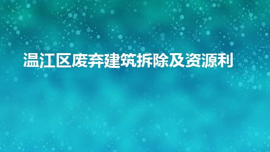 温江区拥有大量废弃的建筑物,这些建筑物所占用的土地面积很大,废弃的建筑物资源没有得到很好的利用,不仅浪费了很多资源,还给环境带来了很大的影响。温江区废弃建筑拆除及资源利用方案将尽可能地利用这些资源,减少浪费,提高利用效率。