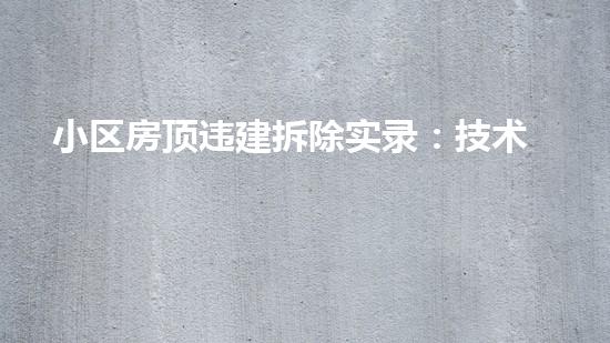 随着城市建设的不断发展,房屋是人们居住的重要场所,而房屋的建设也在不断的完善中。然而有些业主为了谋取更多利益,往往会擅自在房屋上加盖违建,这样不仅严重影响到小区居民的安全和环境,同时也会影响整个城市建设的形象。本文着重讲述的是小区房顶违建拆除实录,以及专业技术的应用,为读者提供专业信息并引导他们更好地了解如何拆除小区房顶违建。