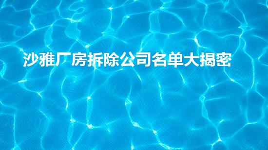 沙雅厂房拆除公司名单的大揭密,在当前社会是一个备受关注的话题。本文以化工技术专家的角度出发,从多个方面对这个话题进行系统解析,为读者提供更加深入、准确和客观的了解。