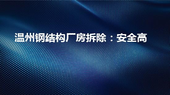 本文从工程专家的角度出发,对如何进行安全高效的温州钢结构厂房拆除做了详细阐述,包括拆除前的准备工作,环保拆除技术,设备回收和处理,环保施工及其他安全注意事项等。只有在工程专家的专业指导下,才能达到拆除过程中的安全高效。因此,建议相关部门应尽快聘请工程专家,规范拆除工程的安全效果,同时积极探索新的环保技术,创造更加美好的环保新模式。