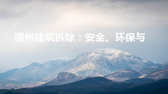 随着城市化的不断发展,温州的建筑拆除成为了一个重要的话题。本篇文章将详细阐述如何在温州进行建筑拆除时,保证安全、环保和经济并重,并介绍了巴洛仕集团化工厂拆除案例以及水刀切割拆除技术的应用。