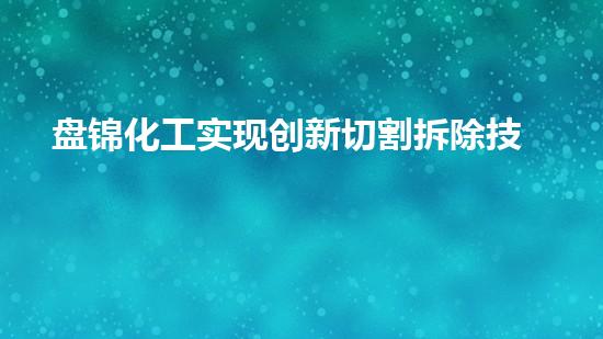 盘锦化工采用了“巴洛仕不动火水刀切割拆除技术”,这种技术是在不使用火源的情况下,利用高压水流切割材料的一种方法。通过使用这种方法,可以在拆除过程中减少安全风险、降低环境污染和节约时间和成本。此外,这种方法也可以用于拆除许多材料,例如金属、玻璃、混凝土等。