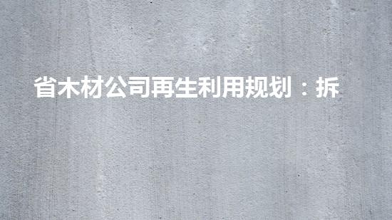 拆除旧建筑是新建工业园区的重要前提。省木材公司再生利用规划中,拆除行业专家应从以下几个方面进行深入研究和提出详细方案: