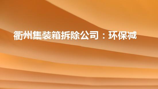 衢州集装箱拆除公司在环保减排方面推出了新方案,本文将详细阐述该方案的几个方面。作为一位拆除行业专家,笔者将从以下四个小标题进行阐述:1)污染物处理技术;2)设备回收;3)危废处理;4)施工环保措施。