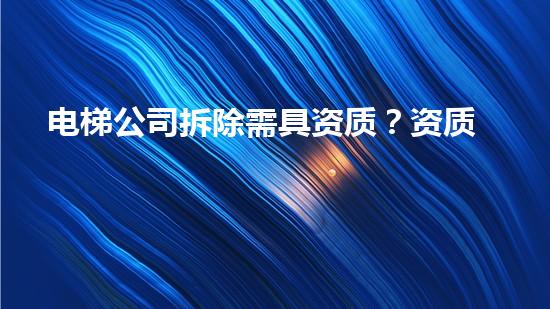 电梯公司拆除需具资质,这里指的是企业拥有的证书或执照。资质的来源一般有两种:政府部门及权威机构的认证和评估、企业自身的管理和运营。