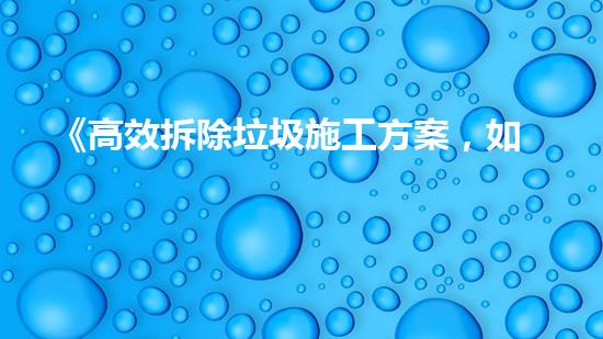 本篇文章主要探讨如何通过高效拆除垃圾施工方案来优化外运流程。首先我们要对该问题提出一个背景,即在巴洛仕化工厂的拆除过程中,面临着诸多困难,包括废弃物处理、污泥减量化、废液处理等等。然而,通过针对性的施工方案和技术手段,我们可以有效减少废弃物数量和安全隐患,并且顺利解决外运流程中可能存在的风险。