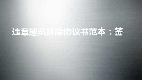 违章建筑拆除一直是社会焦点关注的话题,而签署合理的拆除协议书则可以有效化解相关争议。本文将从化工专家的角度出发,对违章建筑拆除协议书范本的签署流程及注意事项进行详细解析。文章将依次从法律、环保、施工等角度,深入剖析如何签订一份合理的拆除协议书。