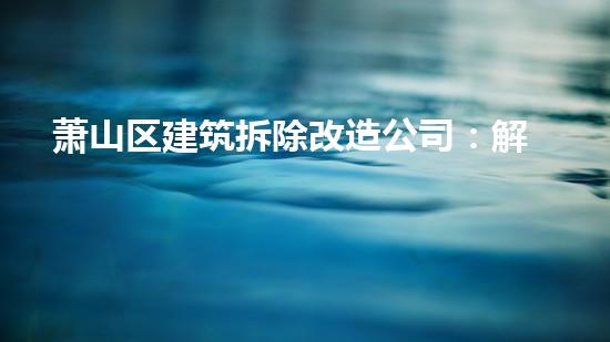 萧山区建筑拆除改造公司积极参与城市更新工作,为城市更新难题提供解决方案。本文将从拆除行业专家的角度,深入分析该公司在城市更新中的应用和优势。