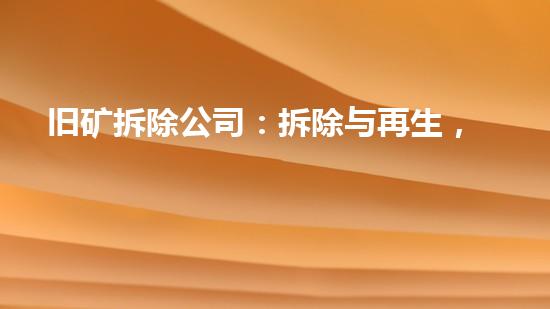 旧矿拆除公司是一个高度专业和高效率的公司,在拆除与再生工作中,为工业生态做出了巨大的贡献。通过优化拆除前置工作、设备回收利用、污泥减量化处理、废液处理、油罐拆除、危废处理和环保施工等多项措施,旧矿拆除公司在工业生态的再生和环境保护等方面,创造了新的记录。计划在未来的工作中,旧矿拆除公司将继续推进技术创新,为工业生态做出更大的贡献。