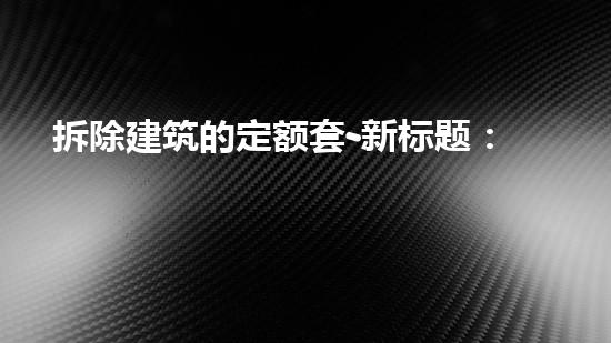 定额套是指拆除过程中所需要的材料和人力资源的标准体系,它是拆除项目前期规划和估价的重要依据。拆除建筑物的定额套在实际操作中可以帮助工作人员评估时间和成本,并为预算提供准确的依据。同时,定额套也可以帮助规范拆除工作的质量和安全标准。