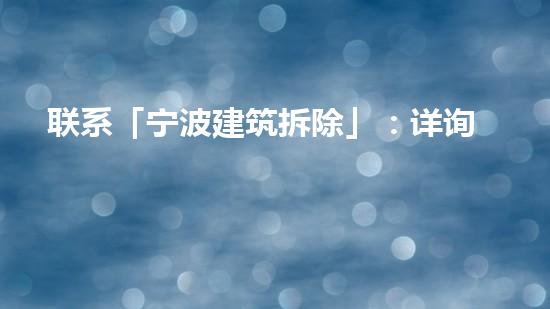 我们欢迎广大客户联系我们的专家团队,了解更多关于宁波建筑拆除的信息。如果您有任何问题或需要帮助,请随时拨打我们的联系电话,或通过电子邮件或网站留言联系我们的客服团队。我们将竭诚为您提供优质的服务和专业的建议。
