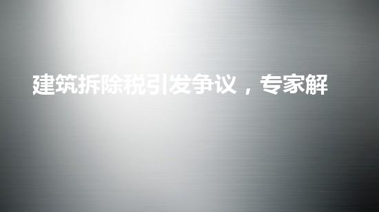 建筑拆除税引发争议,专家解读影响与应对建议。本文从拆除行业专家的角度出发,针对建筑拆除税这一问题,详细阐述其影响和应对建议,旨在为读者提供背景信息以及专业的解读和建议。