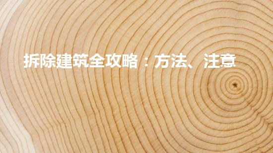 拆除建筑全攻略:方法、注意事项及安全指南是一个非常重要的话题,涵盖了拆迁施工中的所有要点,从拆迁前的准备工作、场地清理、危险废弃物处理、现场安全管理等多个方面进行详细阐述。通过本篇文章的介绍,对广大的拆迁工作者来说,对掌握拆迁工作有了更深入的认识,提升了安全意识与操作技巧,为合理与高效的拆迁提供了帮助和支持。