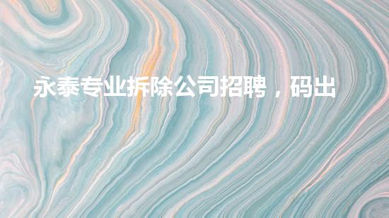 永泰专业拆除公司是一家专业从事拆除行业的企业。本篇文章将深入探讨永泰公司的招聘策略,探寻其成功之道,为想要进入拆除行业的人们提供宝贵的经验。
