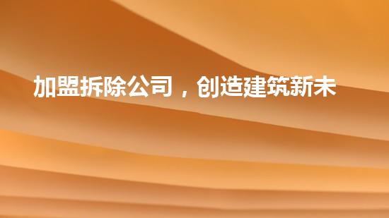 本文以拆除行业专家的角度对加盟拆除公司,创造建筑新未来做了详细专业深入的阐述。加盟拆除公司在实现可持续城市建设、减少环境污染、增强财富效益等方面的重要作用得到了表述。