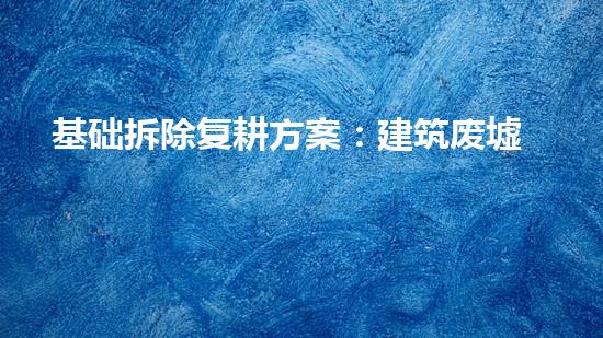 现代城市化建设日益迅猛,随之而来的是大量的废弃建筑物、拆除废料和工程垃圾。如何有效处理这些建筑废墟并将其资源化成为了城市可持续发展的重要议题。本文将着眼于基础拆除复耕方案:建筑废墟重生计划,探讨其实施的可行性以及其对于城市环境和经济社会可持续发展的贡献。