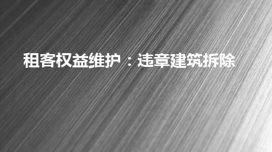 如何保障租客的权益,也是违章建筑拆除中需要解决的问题之一。在实际操作中,需要建立相关的机制和渠道,为租客提供法律援助和咨询服务,帮助他们维护自己的权益。这可以通过加强政策宣传、加大宣传力度等方式实现。同时,在进行拆除前,也应该与租客进行有效沟通,尽可能减少不必要的纠纷。