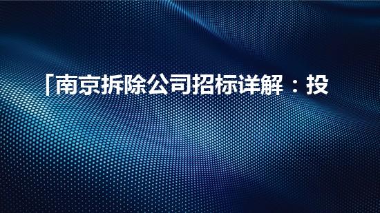 南京市建筑行业正在逐步发展,拆除公司作为建筑行业中一个重要的子行业已经得到了发展。在这里,我们将针对南京拆除公司的招标项目,介绍投标要点、流程和注意事项。我们将以专业化的角度,提供相关的背景信息和技术知识,为读者提供一个完整的认识这个行业和投标项目的机会。