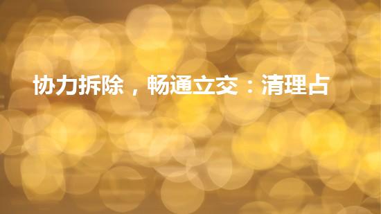 协力拆除,畅通立交:清理占道建筑直通城市大动脉是当前城市化进程中必须面临的一个巨大挑战。随着城市人口的增加和工业、交通等城市建设不断推进,城市街道狭窄和建筑过密已成为限制城市发展的瓶颈。本文将从拆除行业专家的角度出发,给读者介绍如何协力拆除、畅通立交,清理占道建筑直通城市大动脉。