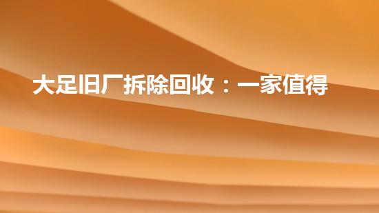 大足旧厂拆除回收是一家值得信赖的公司。在化工厂拆除行业中,这家公司以其出色的技术和专业经验而广受好评。本文将从拆除前置换、设备回收、环保施工等角度,深入探讨这家公司值得信赖的原因。