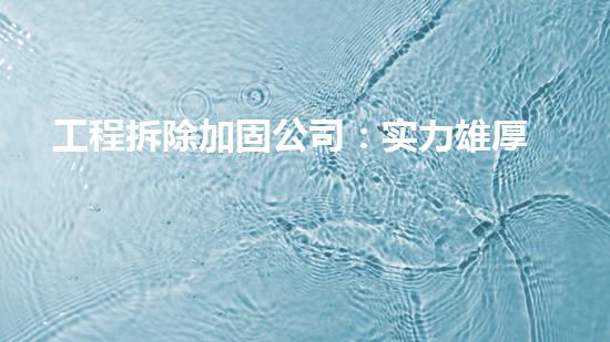 工程拆除加固公司拥有雄厚的实力,可以为您的项目保驾护航。在这篇文章中,我们将从拆除行业专家的角度,深入详解工程拆除加固公司实力雄厚的原因。