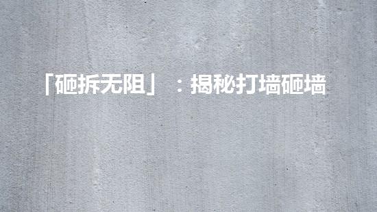 本文将以“砸拆无阻:揭秘打墙砸墙拆除公司内幕”为主题,探讨目前拆除行业内的状况和现状。对于读者来说,了解拆除企业内部的黑幕可能会激起他们的兴趣,本文将提供相关背景信息和讲述专业化、深度的观点。