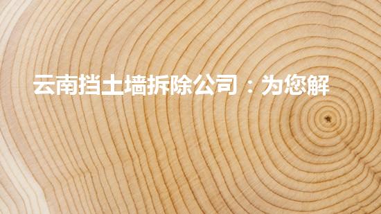 云南挡土墙拆除公司拥有多年专业的拆除经验,为客户提供优质的服务。通过引入先进的技术和设备,解决了传统挡土墙拆除难题。本文从专业的角度,对云南挡土墙拆除公司的服务进行详细阐述,为读者提供全面的了解和参考。