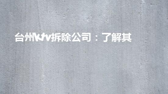 本文介绍了一个专业的台州ktv拆除公司,并详细了解其拆除服务及费用。通过阅读本文,读者可以了解到拆除行业的现状,以及专业的拆除服务及费用。希望本文对读者有所帮助,让大家更好地了解拆除行业的发展。