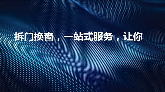 当你选择一站式拆门换窗服务时,你只需要面对一个公司或个人,而不用与多个厂商或供应商打交道。这个公司或个人会为你提供一系列服务,例如拆卸旧门窗、安装新门窗以及任何必要的修复或更改。这项服务通常比你雇佣不同的人完成,会是一种更简单、更干净的过程,因为它使整个拆门换窗的过程更加规范化和平滑。