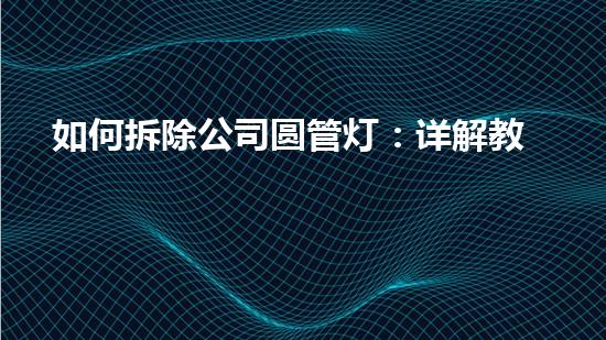 公司圆管灯是一种常见的照明设备,但在更换或拆除时,需要采取一定的措施以确保操作的安全性和有效性。本文由化工技术专家所撰写,主要介绍如何拆除公司圆管灯:详解教程。本文主要从四个方面分别阐述了如何拆除公司圆管灯的详细步骤和注意事项,并且介绍了一些拆除过程中的专业知识和技巧,以帮助人们更好的进行拆除操作。