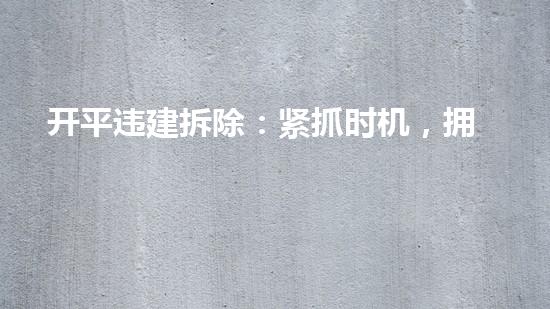 作为一名专业的拆除行业人士,我将对开平违建拆除的情况做出详细的阐述。开平市积极拥抱改革,在拆除违建方面也紧抓时机,不断探索推进工作。本文将从以下4个方面来展开论述:拆除前的规划、拆除技术的创新、废弃物料的处理、以及环保施工的实施。