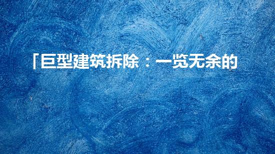 本文将介绍巨型建筑拆除过程中的现场视角,并向读者提供背景信息。拆除行业专家将从多个方面对此进行阐述并提供支持和证据,探讨巨型建筑拆除的关键技术以及如何在拆除过程中最大程度地降低环境和人身安全风险。
