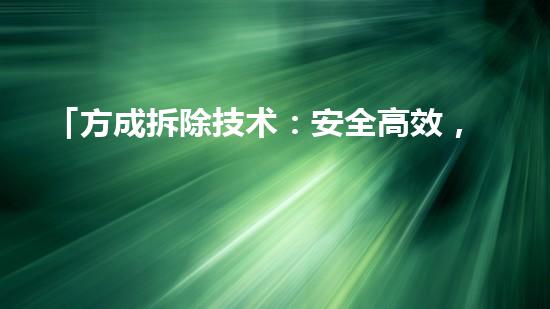 本文将介绍方成拆除技术,这种技术安全高效,助力城市更新。在深入研究方成拆除技术之前,我们会提供背景信息。方成拆除技术已被广泛应用于国内的大型拆除工程中,旨在减少对环境的影响,以及提高城市更新的效率。
