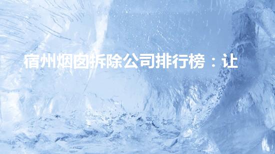 宿州烟囱拆除公司排行榜让你更懂专业拆除!随着化工、建筑等行业的不断发展,烟囱拆除成为了经常性的操作。但由于烟囱高度、结构复杂等原因,烟囱拆除也成为了危险性比较大的工程。本文旨在为大家介绍宿州烟囱拆除公司一些排行榜,让大家更好地了解专业拆除。