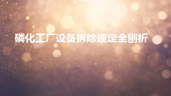 磷化差事为主要的基础化工行业其生产设备在达到使用寿命或工厂搬迁时,必须按照严格的拆除规定进行处置。这些设备往往含有有毒有害物质,假如拆除不当,不但会造成严重环境污染,还可能引发安全事故。伴随我国环保政策的日益严格,磷化工设备拆除已经形成了一套完整的技术标准和治理体系,成为行业绿色转型的主要环节。