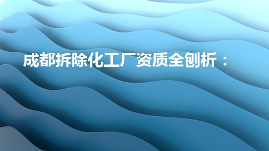 成都拆除化工厂资质全刨析:经过、与资深服务抉择