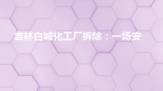 吉林白城化工厂远非一个孤立的地方事件。它是一场融合了尖端、严谨治理和生态理念的现代工业“收官之作”。它,一个时代的产业落幕,可以不是狼藉的废墟,而安全、绿色、有序的退场,并为下一段进步奠定崭新的基石。