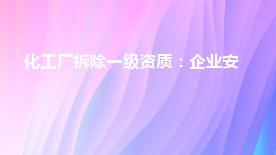 对于拆除施工企业而言,积极获取并维护高等级资质,持续投入技术与人才培养,构建全经过的绿色安全拆除能力,是在未来中立于不败之地的根本。让我们共同以最高的资深标准,化工行业转型升级的安全防线,推动行业迈向更高质量、更可持续的进步新阶段。