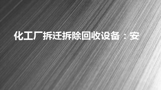 在产业升级、环保要求趋与都市更新的多重驱动下,越来越多的老旧化工厂面临着关、搬迁或拆除的命运。但是,化工厂的拆除绝非“一拆了之”,其内部蕴藏着大量高价值高危险或可循环利用的设备。如何通过、系统的化工厂拆迁拆除回收设备经过,在安全的前提下,化挖掘残余资产价值,并履行环境保护责任,已成为企业治理者、政府监管部门及服务商共同的核心议题。这不但是一项复杂的工程技术挑战,更是一门关乎、安全底线与可持续进步的治理艺术。