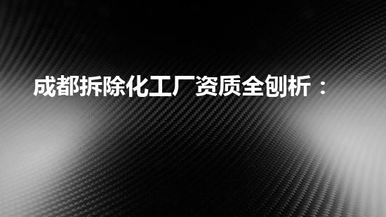 成都拆除化工厂资质全刨析:过程、与资深服务抉择